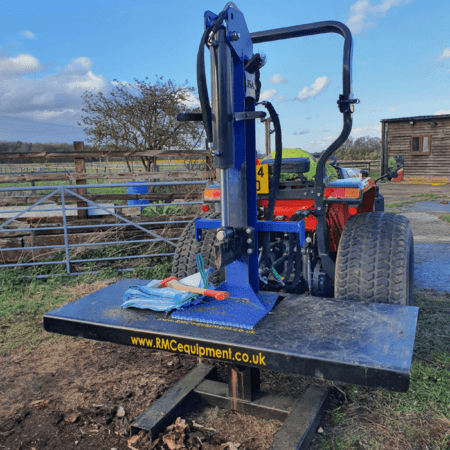This is a heavy-duty log splitter for tree surgeons, farmers, and contractors who need to process a large quantity of firewood. The splitter is mounted 800mm high on the base table, which has an area 600mm wide and 740mm deep on each side of the splitter to make moving and handling the timber easy. It also has extending bag rails to hang bulk bags on the table end for easier bag filling. The splitter is supplied with extended hoses for the table and linkage pins in cat 1 or 2 in both the splitter and the table. The base of the splitter is manufactured from 10mm folded tread plate to prevent the logs from slipping during the splitting process and is reinforced by 12mm and 15mm plates. The main post uses a structural beam for the ultimate strength, preventing bending and twisting. Two position 12mm top plates mount the hydraulic cylinder. Easy to operate two-handed operation to meet the latest legal requirements. Rear-mounted valve block. Long supply and return pipes with male quick fits to fit most tractors. It will run on any tractor with a hydraulic supply and return or hydraulic power pack. 650mm max log length.