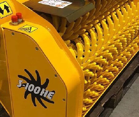 The HE range, designed for heavier excavators but, has the option for loader conversion on 120-150 models, these buckets have increased size and capacity in comparison to the E range due to increase in rotor quantity and length.
