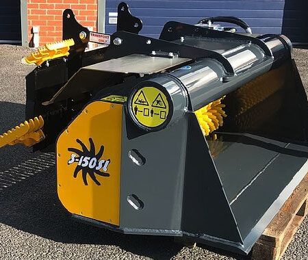 The Gyru-Star 3-150SL, the largest skid steer bucket in the Gyru-Star compact screening Family, 1500mm wide with three rotors. All SL buckets come ready to use and can have an option oil flow regulator.