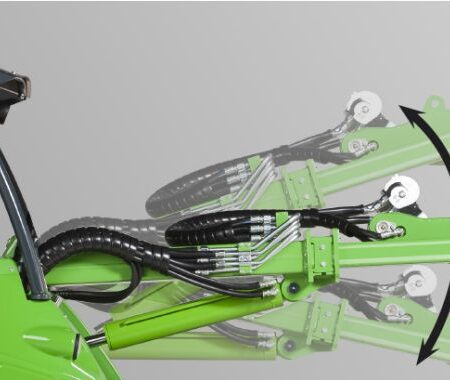 The hydraulic self-levelling system keeps the position of the attachment the same in relation to the ground.