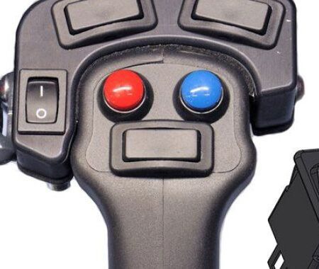 Telescopic boom and auxiliary hydraulics functions on the loader can be equipped with electric solenoid valves and operated with switches on the joystick.