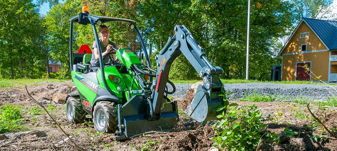 Avant backhoe 170 is a compact digging unit, intended mainly for Avant 200 series. The main focus in design was user-friendliness and straight forward construction. Backhoe 170 is a small backhoe, which is at its best in tight situations where space is limited. Boom movements are smooth and precise, which makes operation easier also for less experienced users. To facilitate the digging the frame of the backhoe is as low as possible, which gives unrestricted visibility to the work area.