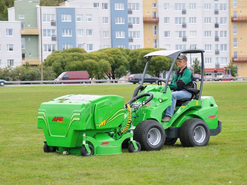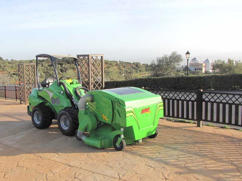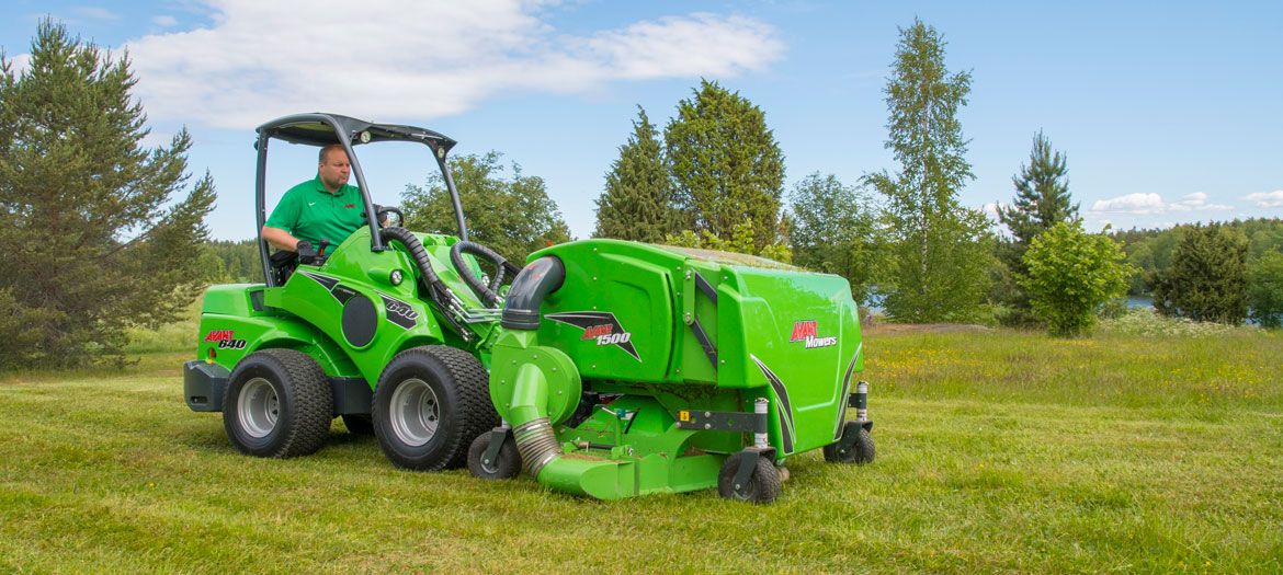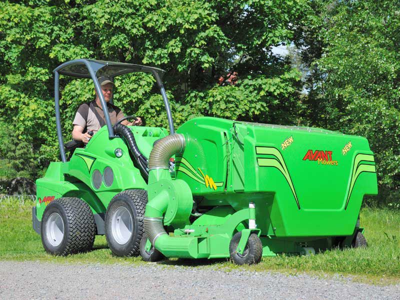 Collector box volume is designed to be large enough for professional use also in larger areas. Lid opening is hydraulic and operated from Avant’s driver seat. By lifting the loader boom and tilting the mower forward the collector box can be emptied into a container, skip etc. Collector box is pivoted in the front and can be tilted forward for easier maintenance. Two indicator arrows on the Optifloat™ quick attach plate make adjustment of the floating very easy. The wheels are foam filled, puncture free rubber tyres.