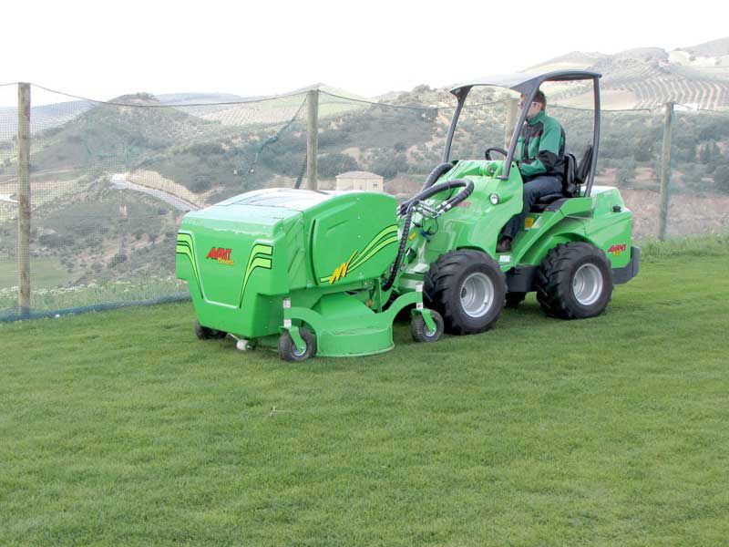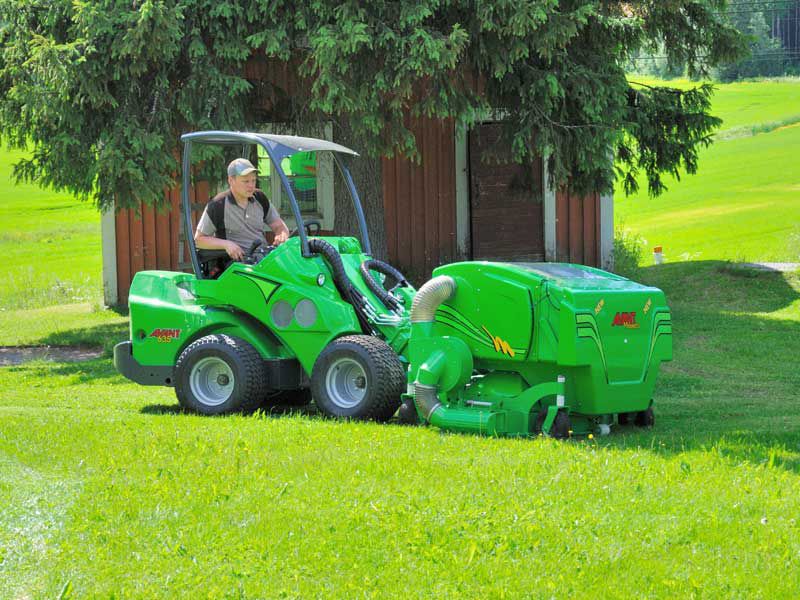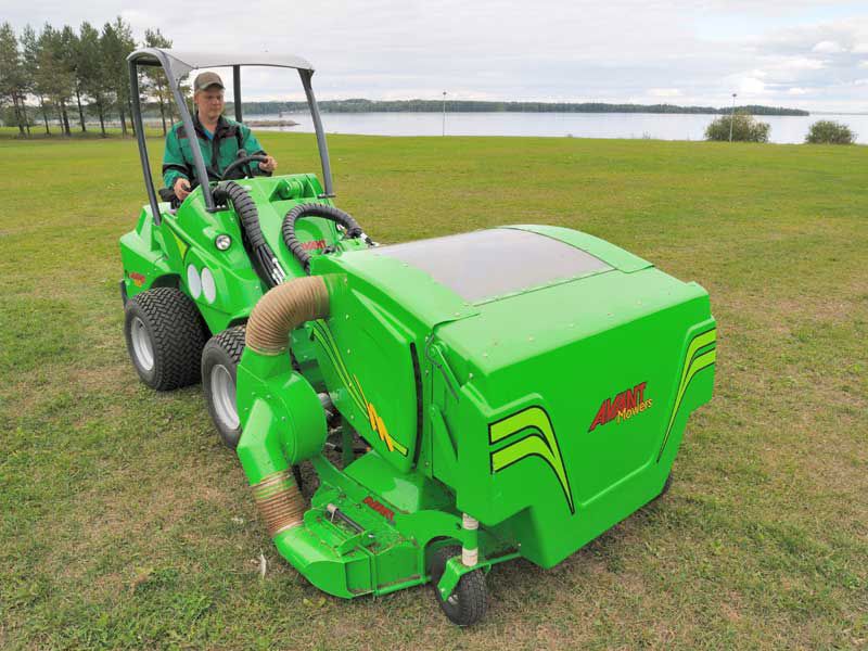 Collecting mower designed for professional use with 1500 mm cutting width and 800 liter collector box. The high suction power makes it also possible to collect tree leaves on lawns. The blades cut the grass, tree leaves etc. to a fine mulch which packs tightly into the collector box.