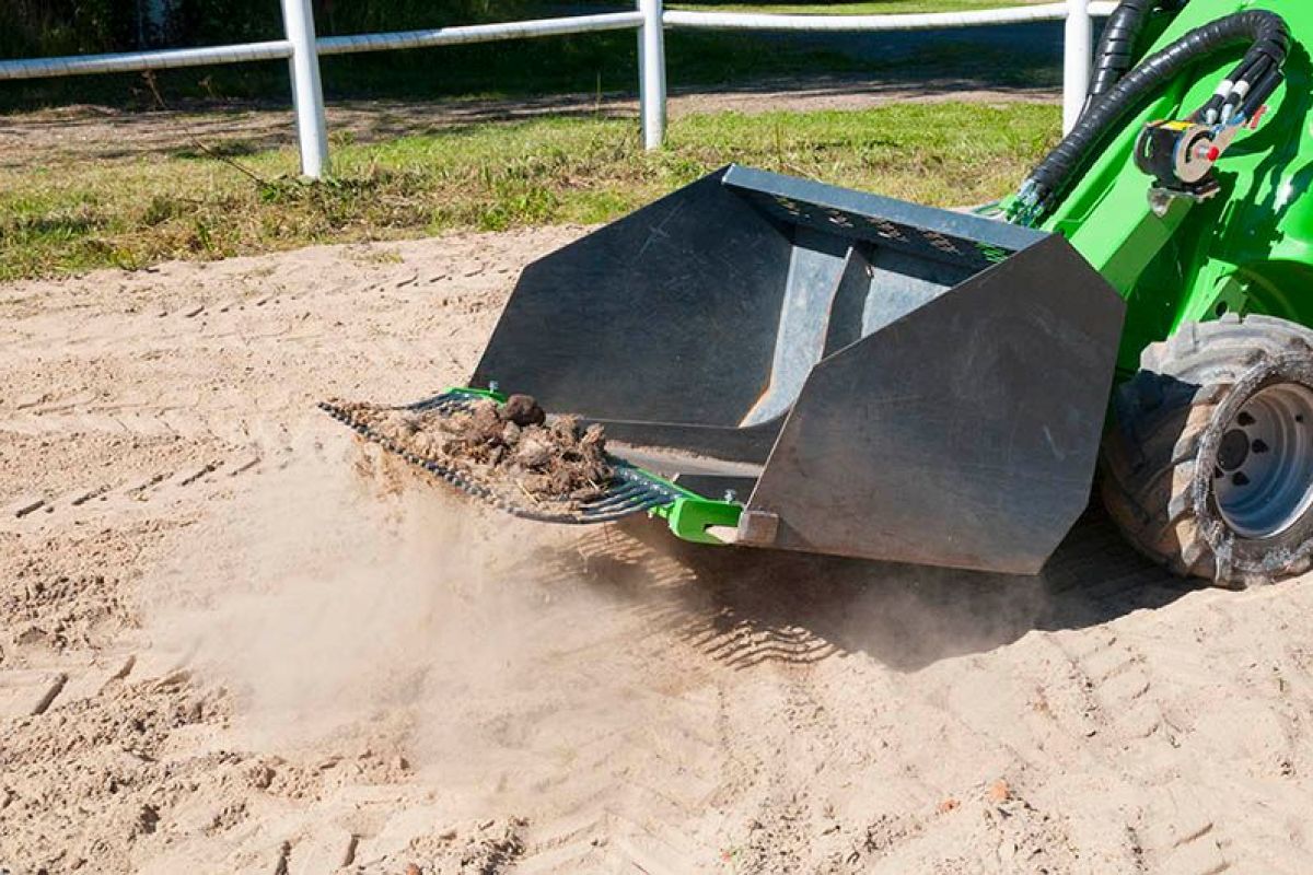 Horse manure collector is a simple and economical way to collect horse manure. It works well on many surfaces (sawdust, horse arenas). Mounts directly on any Avant bucket.