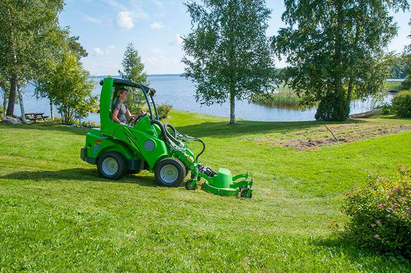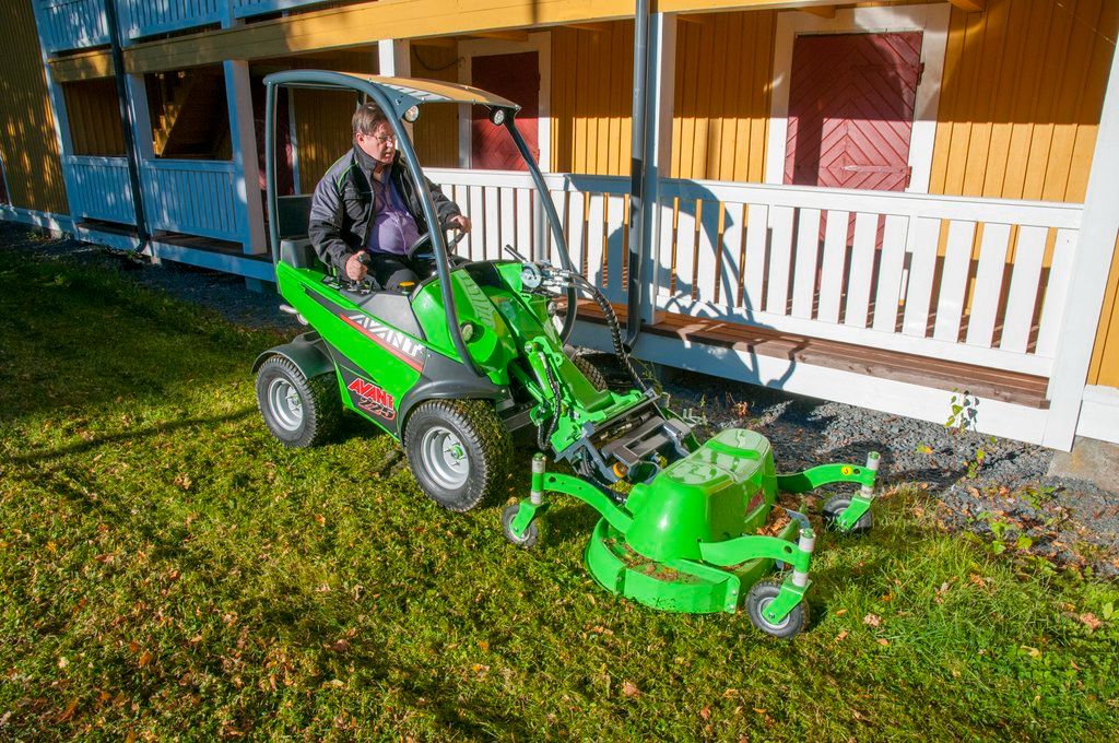 The lawn mower 1200 is a robust and efficient mower deck. It is equipped with the OptifloatTM floating system, developed by Avant, which guarantees optimal touch with the ground also on uneven lawns. Two indicator arrows on the quick attach plate make adjustment of the floating very easy: when the mower is on level surface and the arrows meet, Optifloat™ is adjusted correctly.