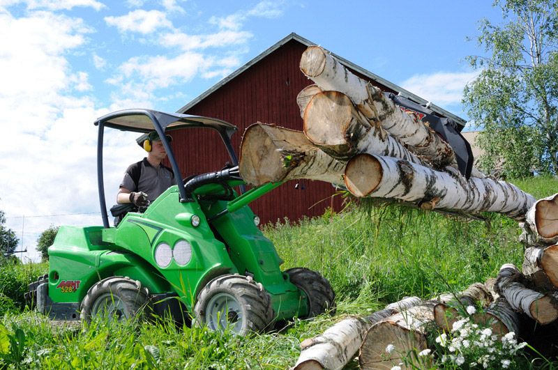 The Avant log grab mounts on Avant pallet fork. With the log grab you can lift and transport single logs or smaller timber bundles. The grab is equipped with a powerful hydraulic cylinder and can therefore also lift bigger stones, as well as branches, fence poles and similar objects.