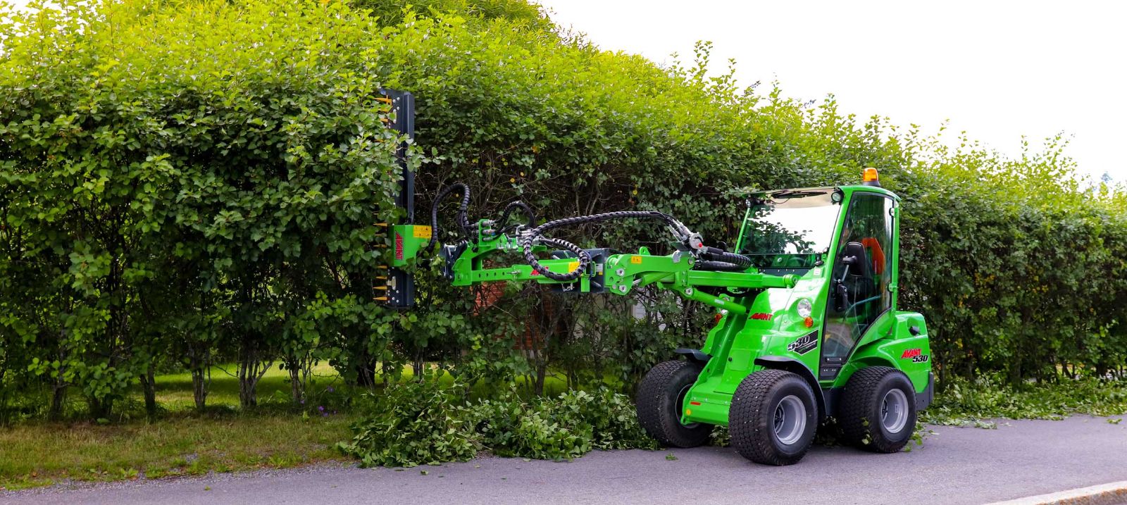 The mounting bracket of the cutting bars is pivoted and locked with a bolt, and can be turned manually in different positions. This gives the possibility to for instance cut the hedge horizontally, vertically and in different angles.The cutting bars are also equipped with a pressure relief valve which protects the unit if it hits an obstacle.