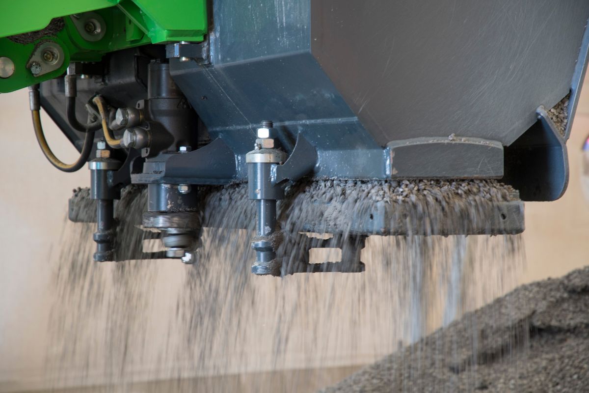 The unit spreads about 200-300 mm wider than the spreader’s own width, and thanks to the smooth movement of the spreading plate there is no risk of causing damage to the objects around (parked cars, buildings, etc.). Spreading speed can be adjusted steplessly with a flow divider valve.