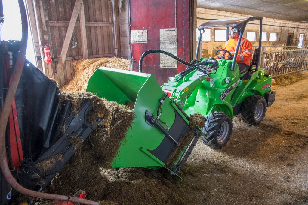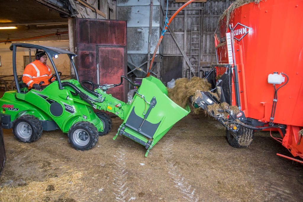 The dispenser bucket is equipped with a straight edge that can be filled like a normal bucket directly from floor level. Distributes silage to about 10 cows/fill – it takes approx. 10 minutes to distribute silage to 50 cows. Manual side hatch adjustment is a standard feature, hydraulic side hatch operation is available as an option.