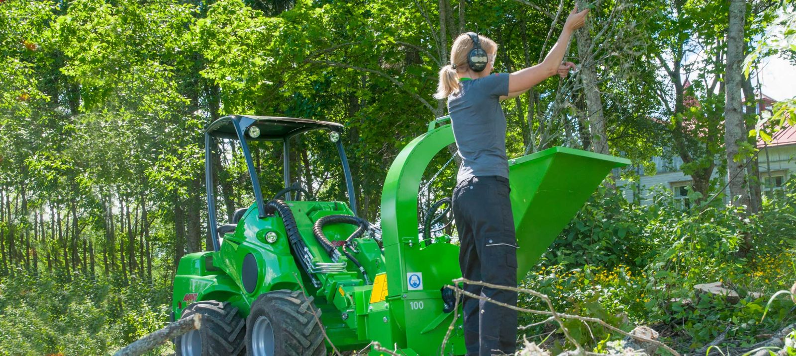 Wood chipper CH100 is a compact and robust disc chipper which works also on Avant 200 series 2 and 400 series. With it, you can chip branches and small trees up to 100 mm diameter – an ideal tool for chipping wood in a smaller scale. Two knives and an anvil take care of chipping and feeding. Wood feeding is manual.