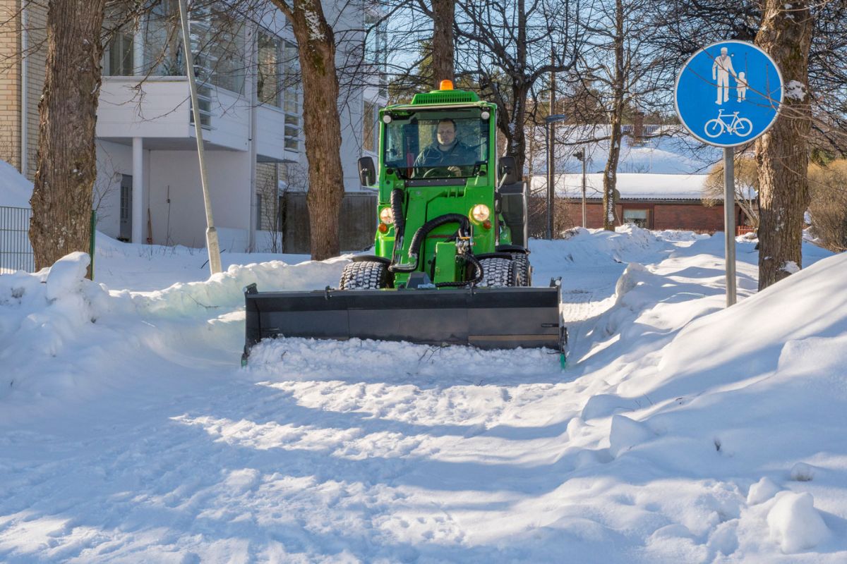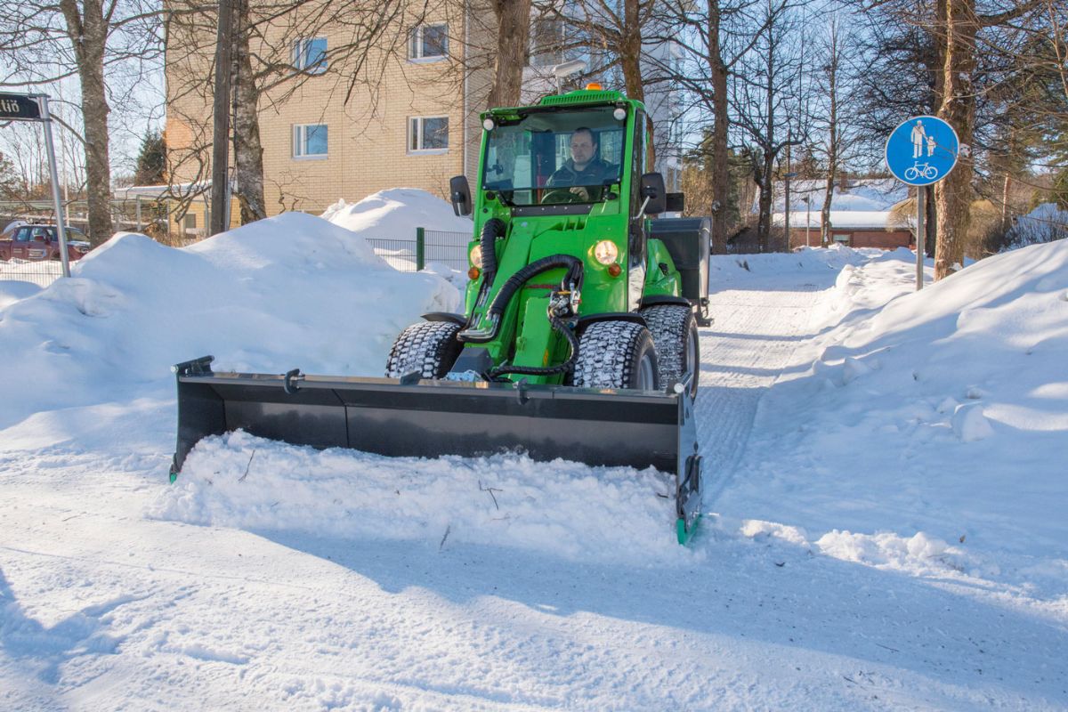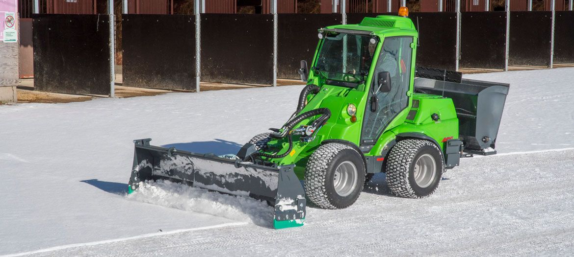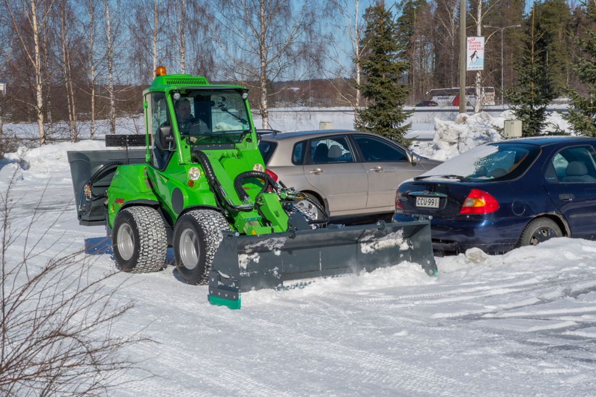This new type of snow plow is equipped with a straight main blade and two wings which can be extended and retracted steplessly, powered by two hydraulic cylinders. This gives several different working widths and makes the snowplow very versatile. The plow is also equipped with hinged endplates which can be turned down on the ground. This allows fast and efficient snow collecting. When the endplates are turned up over the blade the plow works as a conventional dozer blade and moves snow quickly to the side – and is narrower as well. The endplates are spring loaded which means they follow the contours of the ground well.