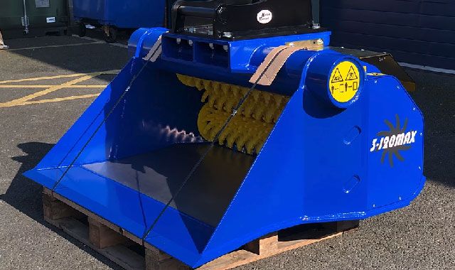 The Gyru-Star 3-120MAX, part of the largest range in the Gyru-Star compact screening Family, with three rotating shafts packed with polyurethane flexi- stars 1200mm wide. All MAX buckets have a longer wider cutting edge and non stick floor as standard.